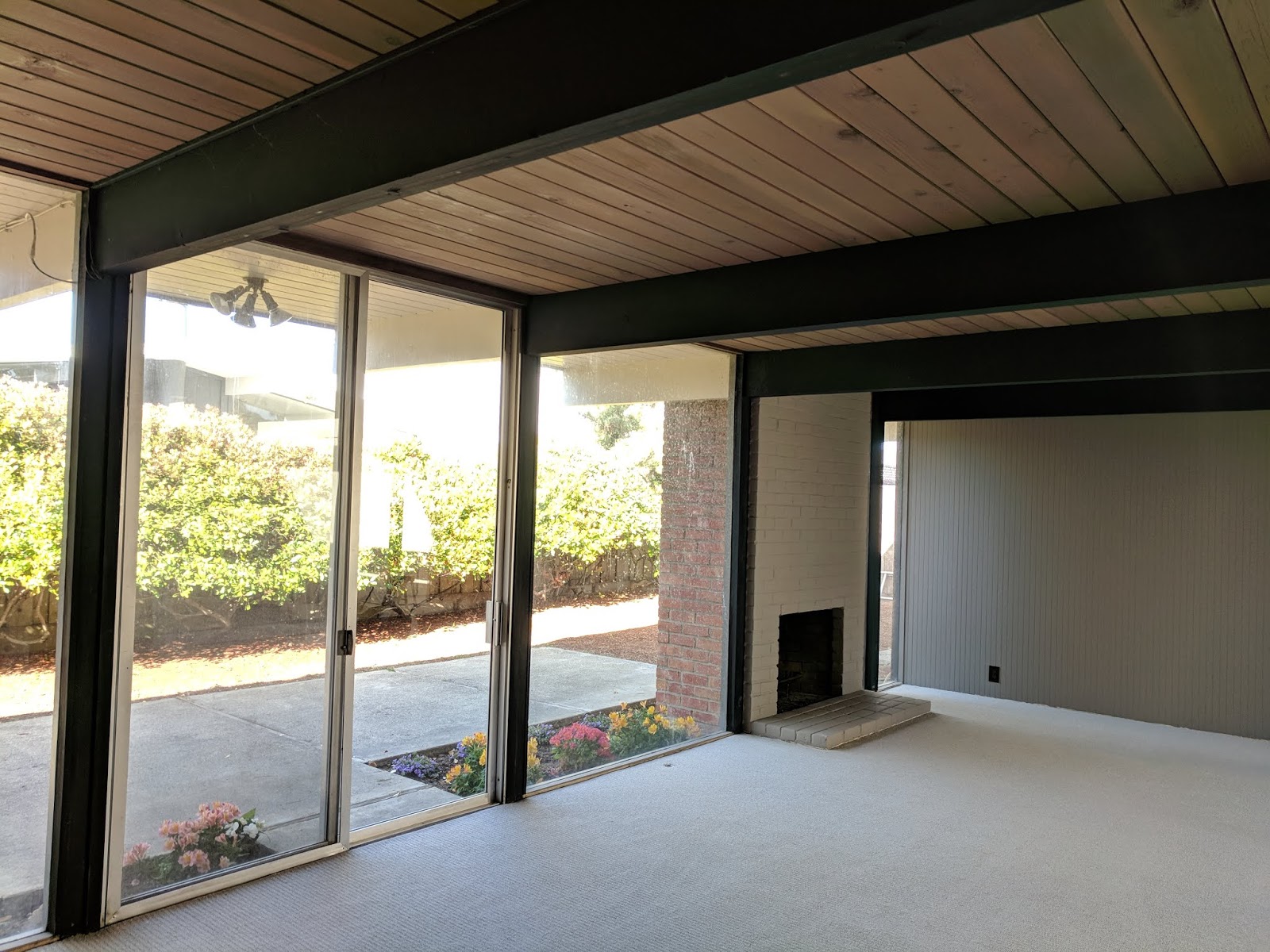 Yesterday, I had the pleasure, if I can use that word, of being part of a cleaning team to help get a local Eichler home ready for sale. This Eichler appeared to be a 4 bedroom with kitchen, living room, sizable office/den, 2 full baths and a small sort of bonus room of off the kitchen whose use could not figure out. (See first picture below.)